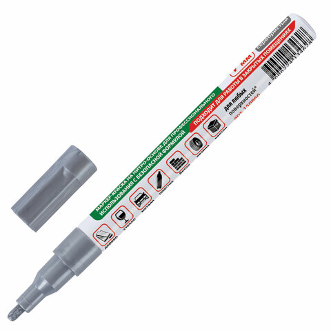 Маркер-краска лаковый BRAUBERG предназначен для маркировки различных материалов в промышленных условиях: бетона, дерева, стекла, металла, резины, пластика. Также подходит для творчества и декорирования.<br><br>СПОСОБ ПРИМЕНЕНИЯ: