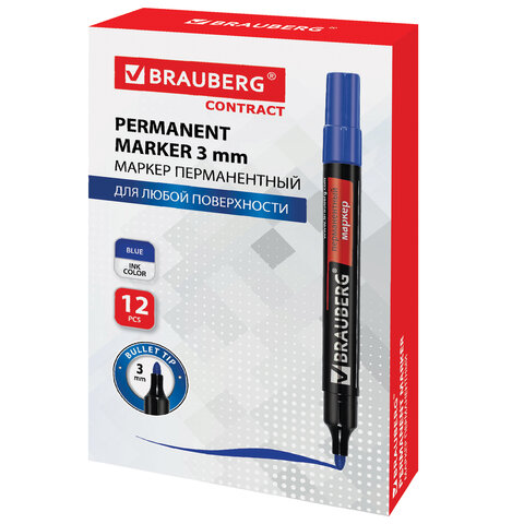 ----Маркер перманентный BRAUBERG "Contract", СИНИЙ, круглый наконечник, 3 мм, 150466