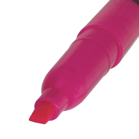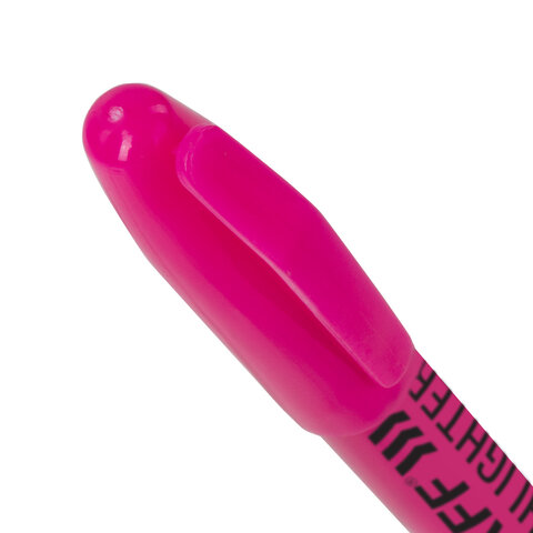 Текстовыделитель розового цвета обладает круглой формой корпуса диаметром 12 мм. Корпус тектовыделителя оснащен удобной зоной захвата. Скошенный наконечник имеет толщину линии письма от 1 до 3 мм, что обеспечивает удобство при работе с текстом, напечатанным мелким шрифтом, или таблицами. Текстовыделитель обладает экономным расходом чернил. Светоустойчивые чернила на водной основе не выцветают даже на открытом солнце и не размазываются в процессе использования. Изделие не перезаправляется. Корпус с колпачком соответствует цвету чернил. Это товар эконом-сегмента, поэтому он отличается привлекательной ценой. Товар обладает базовым набором характеристик и простой упаковкой, при этом полностью соответствует основным требованиям потребителей.