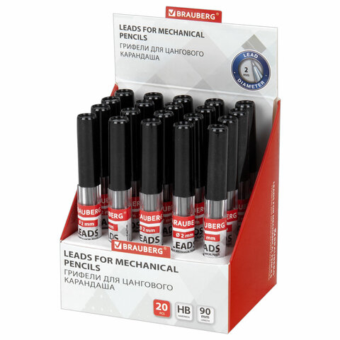 Сменные сверхпрочные грифели BRAUBERG для цангового карандаша. Предназначены для работы на бумаге, подходят для работы с любыми цанговыми карандашами.<br><br>Изготовлены из высококачественных полимерных материалов, обеспечивающих мягкое письмо. Устойчивы к излому. Обладают средней степенью твердости – HB. Длина грифеля составляет 90 мм, а его диаметр - 2 мм. 6 штук в упаковке. Поставляются в пластиковой тубе.<br><br>Диаметр грифеля: 2 мм<br>Твердость грифеля: HB<br>Длина грифеля: 90 мм<br>Количество в комплекте: 6 шт.<br>Цвет грифеля: серый<br> Устойчивость к излому: да<br>Материал изготовления: графит<br>Индивидуальная упаковка: пластиковая туба<br>Упаковка: картонный дисплей