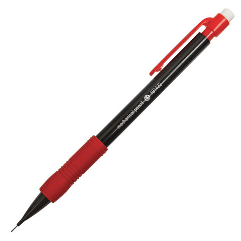 Механический карандаш STAFF – низкая цена и приемлемое качество. Ничего лишнего.<br><br>Тип карандаша: механический<br>Диаметр грифеля: 0,5 мм<br>Наличие ластика: да<br>Твердость грифеля: НВ<br>Форма корпуса: круглая<br>Резиновый грип: да<br>Количество в комплекте: 1 шт.<br>Серия: College MP-422<br>Запасные грифели в комплекте: 1 шт<br>Материал корпуса: пластик<br>Материал клипа: пластик<br>Цвет корпуса: черный<br>Упаковка: картонная коробка -
