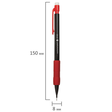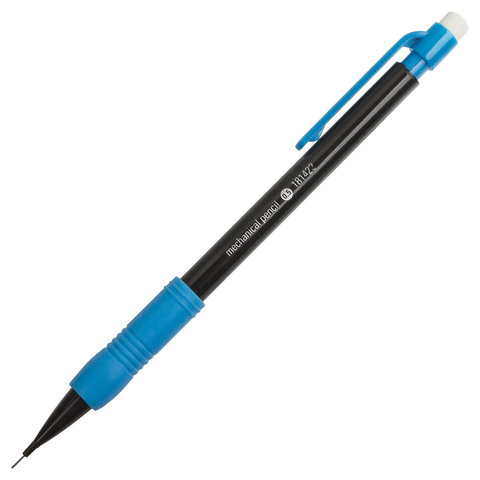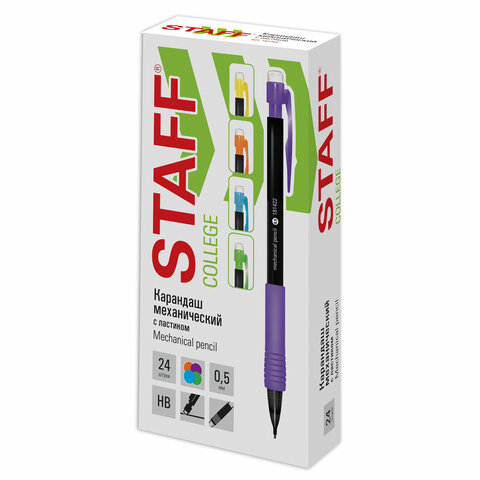 ----Карандаш механический 0,5 мм, STAFF "College" MP-422, ластик, резиновый грип, корпус черный, детали ассорти, 181422