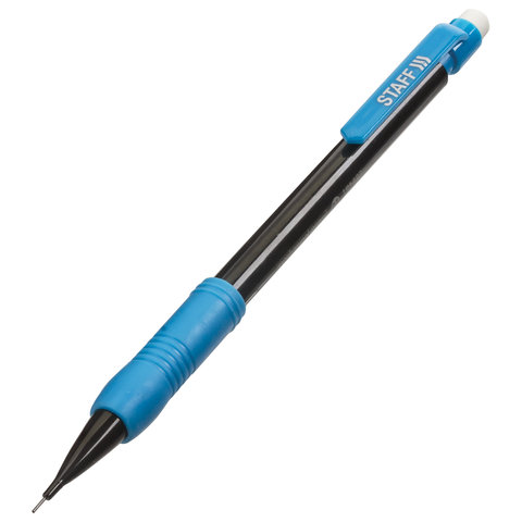 Механический карандаш STAFF с черным корпусом и деталями ярких цветов ассорти.<br><br>Карандаш с нажимным механизмом всегда заточен, готов к работе и дает ровную линию выбранной толщины (в зависимости от толщины грифеля).
