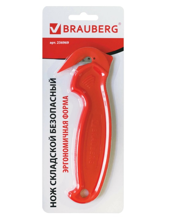 ----Нож складской безопасный BRAUBERG "Logistic", для вскрытия упаковочных материалов, блистер, 236969