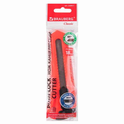 ----Нож канцелярский 18 мм BRAUBERG "Classic", фиксатор, корпус ассорти, упаковка с европодвесом, 230917