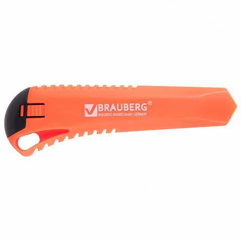 Канцелярский нож BRAUBERG «Classic» – это доступное по цене изделие, предназначенное для использования в офисе или дома. Универсальный предмет, способный справляться как с регулярными объемными задачами, так и с периодической нагрузкой.<br><br>Инструмент прекрасно лежит в руке за счет специфической формы корпуса и рифленой поверхности. Его можно удобно зафиксировать, не беспокоясь о том, что нож соскользнет и отрежет лишнее или поранит кожу. Для того, чтобы лезвие не меняло свое положение, предусмотрен специальный фиксатор. С его помощью режущую часть можно выдвинуть настолько, насколько это необходимо. Лезвия подлежат замене, запасной комплект приобретается отдельно. Заменить режущую часть просто: достаточно снять верхнюю заглушку и вытащить затупившийся или поломанный элемент. Если кончик лезвия затупился, его можно отломить по специальной контрольной линии. Сделать это удастся даже не вынимая режущую поверхность из ножен, аккуратно надавив на край выдвинутого лезвия. Отличается повышенной прочностью, удобством в использовании и долговечностью. Широкое лезвие в 18 мм позволяет работать с довольно плотными материалами, например, картоном, пластиком или тонкой древесиной. Большие объемы ткани, бумаги, целлофана и других материалов тоже прекрасно поддаются воздействию канцелярского ножа BRAUBERG «Classic». Доступны инструменты в красном, желтом и зеленом цветовых решениях (поставляются без возможности выбора). Само изделие поставляется в упаковке с европодвесом.