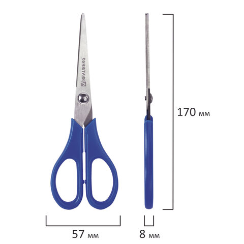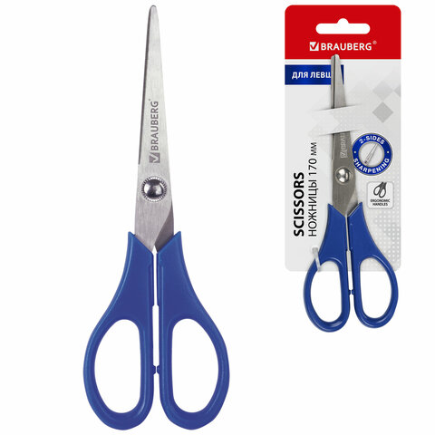 ----Ножницы BRAUBERG для левши "Left hand", 170 мм, синие, 2-х сторонняя заточка, 236785