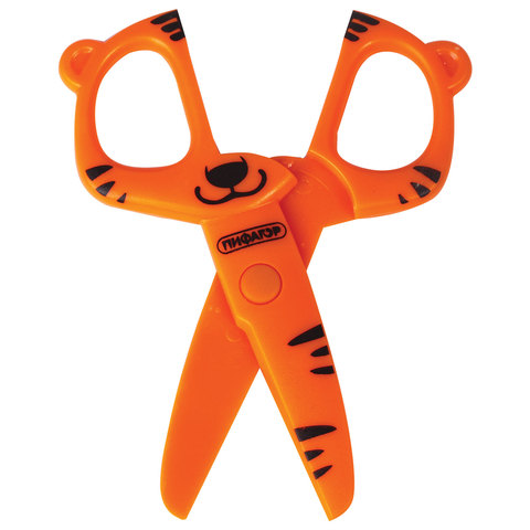 ----Ножницы ПИФАГОР "Тигренок", 120 мм, с безопасными пластиковыми лезвиями, оранжевые, картонная упаковка с европодвесом, 236858