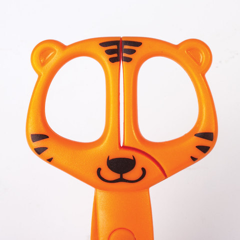 Ножницы ПИФАГОР "Тигренок", 120 мм, с безопасными пластиковыми лезвиями, оранжевые, картонная упаковка с европодвесом, 236858