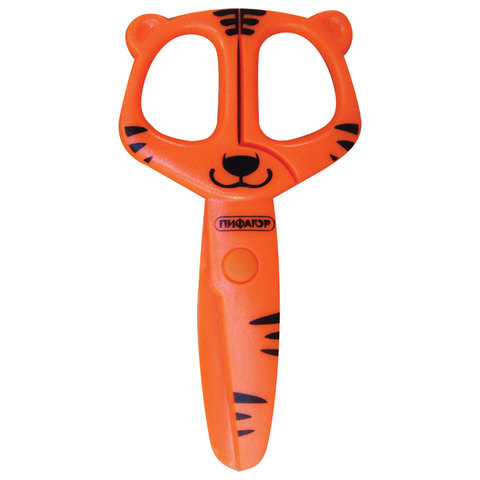 Универсальные ножницы ПИФАГОР с фигурными ручками в виде тигренка идеально подойдут для детского творчества. Они абсолютно безопасны даже для самых маленьких.<br><br>Ножницы ПИФАГОР предназначены для правшей. Ребенок без труда сможет ими воспользоваться, так как их длина всего 120 мм. Благодаря специальным пластиковым лезвиям с закругленными концами ножницы не повреждают кожу, волосы или одежду, режут только бумагу и картон. Изготовлены из прочного качественного пластика, что обеспечивает максимально долгий срок службы. Продаются в картонной упаковке с европодвесом.<br><br>Длина: 120 мм<br>Тип ножниц: универсальные<br>Закругленные концы: да<br>Цвет: оранжевый<br>Длина лезвий: 62 мм<br>Ручки: фигурные<br>С цветным рисунком на лезвиях: да<br>Материал ручек: пластик<br>Материал лезвия: пластик<br>Упаковка: с европодвесом