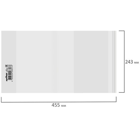 ----Обложка ПП со штрихкодом для тетрадей, прописей Горецкого, КЛЕЙКИЙ КРАЙ, 80 мкм, 243х455 мм, универсальная, прозрачная, ЮНЛАНДИЯ, 229353