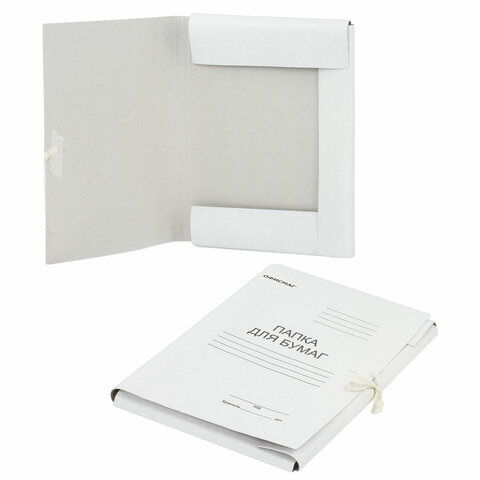 С папкой для бумаг ОФИСМАГ на завязках все важные бумаги будут в целости и сохранности.<br><br>Папка стандартного формата А4 вмещает до 200 листов. Изготовлена из немелованного картона плотностью 280 г/м2. Ширина корешка составляет 22 мм. На лицевой стороне есть поля для подписывания. Поставляется в гофрокоробе.<br><br>Вместимость: 200 листов<br>Формат : А4<br>Количество завязок: 2 шт.<br>Материал крышки: немелованный картон<br>Материал корешка: немелованный картон<br>Материал клапанов: немелованный картон<br>Серия: Standard<br>Плотность: 280 г/м2<br>Ширина корешка: 25 мм<br>Высота: 305 мм<br>Ширина: 220 мм<br>Цвет: белый<br>Упаковка: гофрокороб
