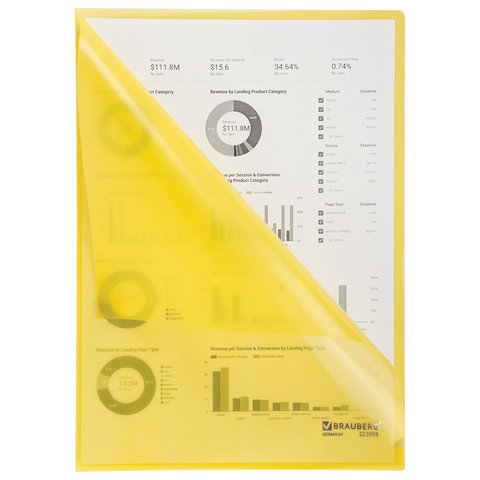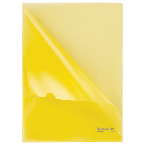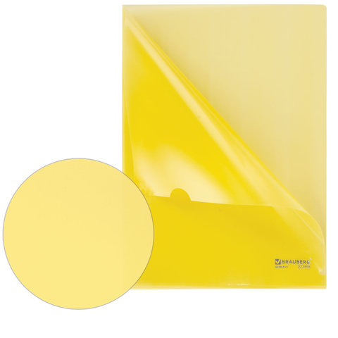 ----Папка-уголок жесткая BRAUBERG, желтая, 0,15 мм, 223968