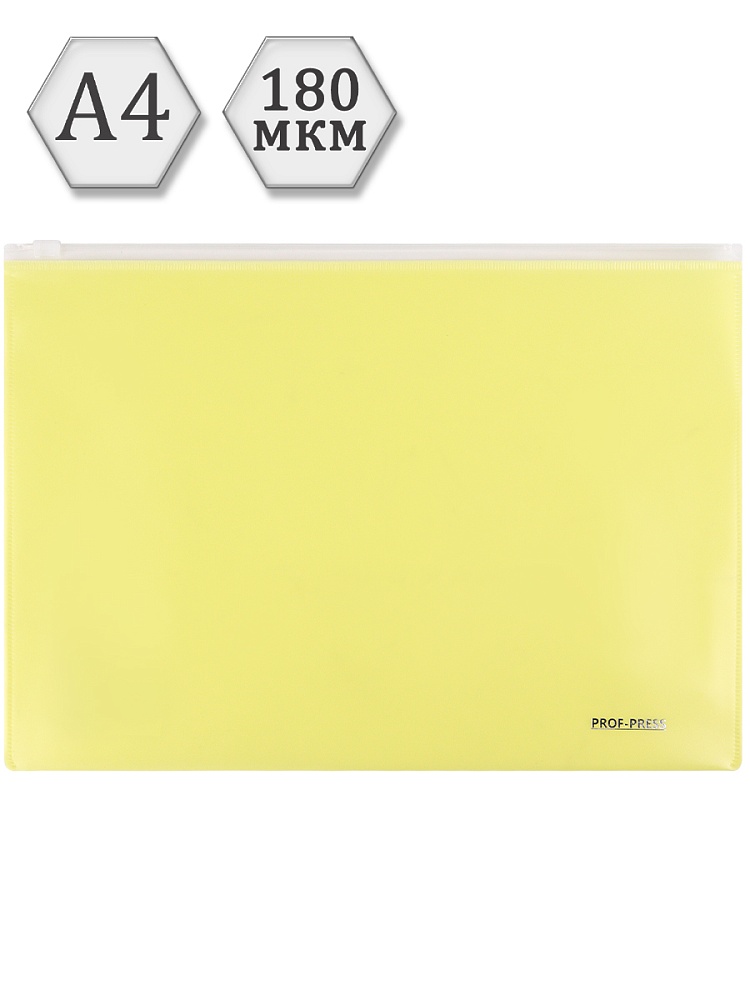 ----Папка-конверт на молнии, А4, 180мкм, желтый (ПК-3044) кратно 12
