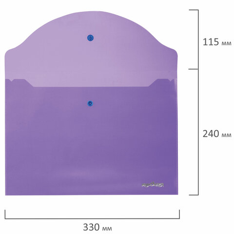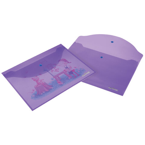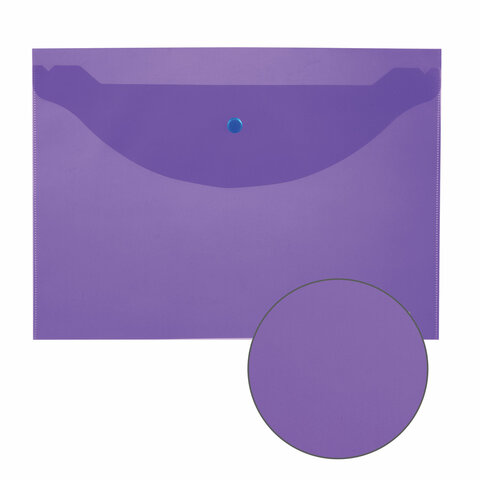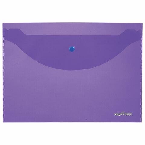----Папка-конверт с кнопкой ЮНЛАНДИЯ, А4, до 100 листов, прозрачная, фиолетовая, 0,18 мм, 228669