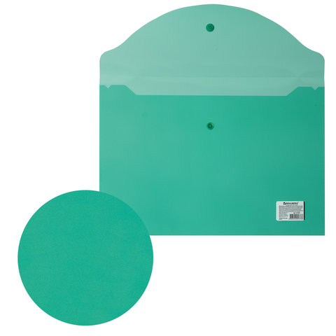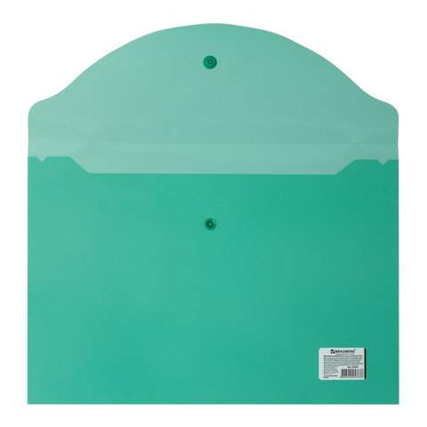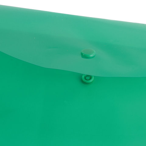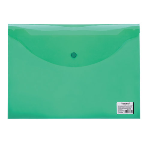 ----Папка-конверт с кнопкой BRAUBERG, А4, до 100 листов, прозрачная, зеленая, 0,15 мм, 221635