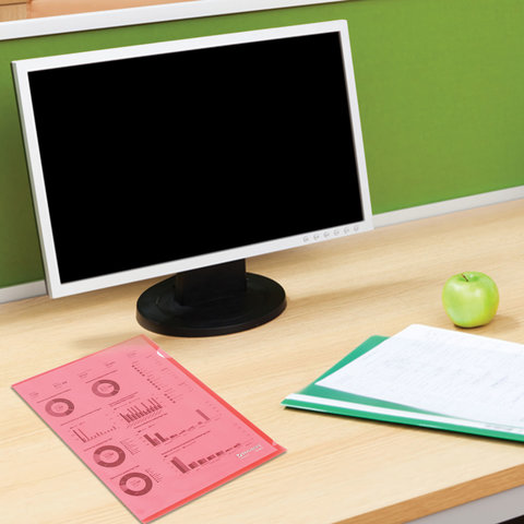 Папка формата А4 выполнена из высококачественного полипропилена плотностью 150 мкм. Она предотвращает смятие, загрязнение или намокание бумаг. Прозрачный материал позволяет определить содержимое, не открывая папку. Специальная выемка для перелистывания листов облегчает работу с документами. Данная папка заметно выделяется среди других благодаря яркому красному цвету.
