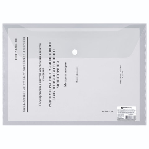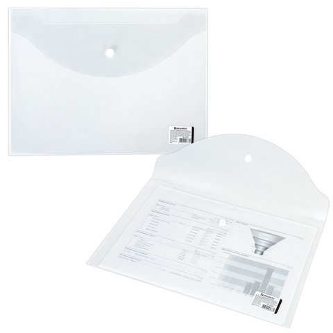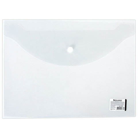 ----Папка-конверт с кнопкой BRAUBERG, А4, до 100 листов, прозрачная, 0,15 мм, 221638
