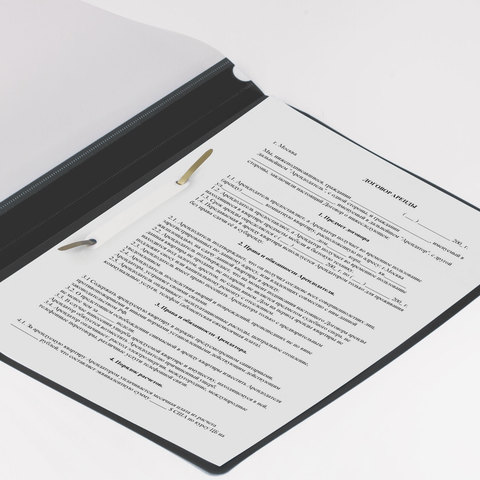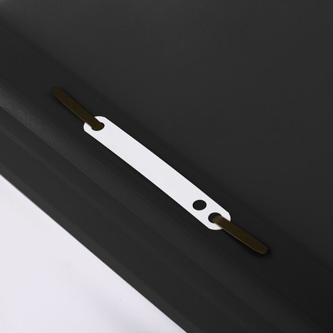 Фиксирует до 100 листов формата А4. Толщина пластика верхнего листа составляет 130 мкм, а нижнего - 180 мкм. Предельно простой механизм подшивки: металлические усики и пластиковая планка для надежной фиксации документов. Скоросшиватель изготовлен из качественного полипропилена. Прозрачный верхний лист позволяет определить содержимое, не открывая скоросшиватель, который к тому же снабжен сменным пластиковым корешком, что дает возможность структурировать информацию. Благодаря фактуре "песок" и строгому черному цвету обложки папка никогда не затеряется на полке.