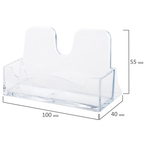 ----Подставка для визиток настольная BRAUBERG CLASSIC 40х100х55 мм, на 50 визиток, прозрачная, 238103