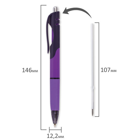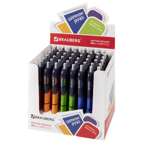 ----Ручка шариковая автоматическая с грипом BRAUBERG "Supreme", СИНЯЯ, корпус ассорти, узел 0,7 мм, линия письма 0,35 мм, 141545