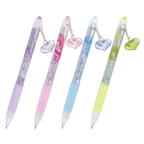 ----Ручка шариковая автоматическая с грипом BRAUBERG "First Love", СИНЯЯ, подвеска, корпус ассорти, узел 0,5 мм, линия письма 0,3 мм, 141285