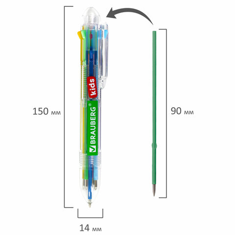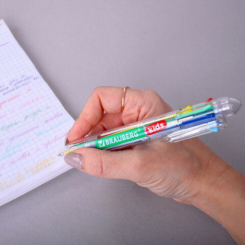 Автоматическая шариковая ручка BRAUBERG KIDS умеет писать 8 цветами! Станет незаменимым помощником в учёбе и работе.<br><br>Ручка имеет прозрачный корпус, через который видны 8 цветных стержней. Сменный стержень длиной 90 мм. Диаметр пишущего узла 0,7 мм создает тонкую линию письма 0,35 мм. Автоматическая шариковая ручка со стержнями восьми различных цветов в одном корпусе позволит выделить важную информацию в записях.