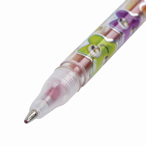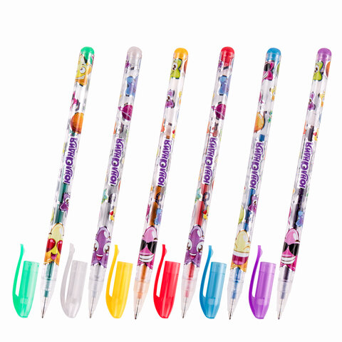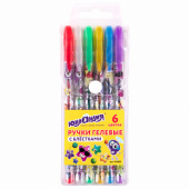 ----Ручки гелевые ЮНЛАНДИЯ, НАБОР 6 ЦВЕТОВ, БЛЕСТКИ, корпус с печатью, узел 0,7 мм, линия письма 0,5 мм, 142802