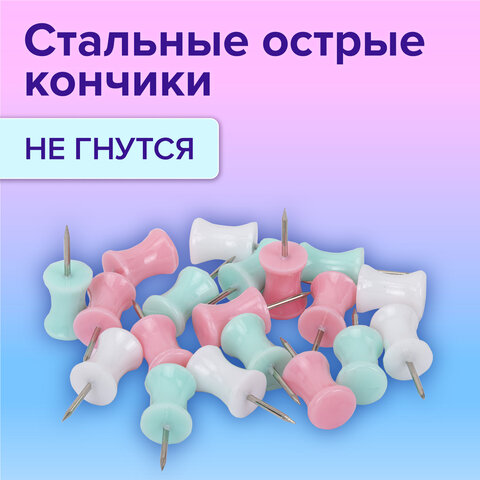 ----Силовые кнопки-гвоздики BRAUBERG PASTEL, пастельные цвета, 30 штук, 12 мм, 272756