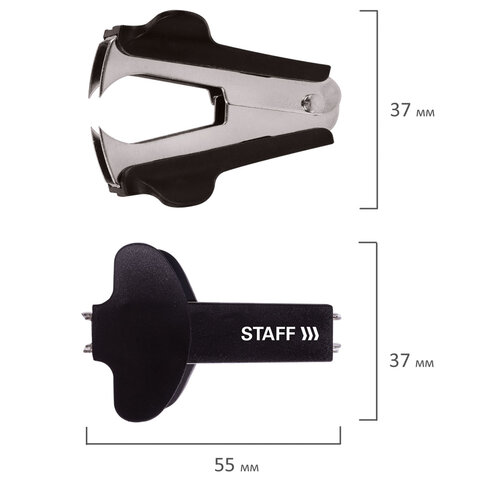 Антистеплер STAFF предназначен для удаления скоб № 10 и № 24/6.<br><br>Рабочий механизм антистеплера выполнен из металла, корпус — из пластика черного цвета. Позволяет разжать закрепленные скобы, не нанося повреждений ни материалу, ни кончикам пальцев.<br><br>Размер скоб: №10, №24/6, 26/6<br>Серия: EVERYDAY<br>Материал корпуса: металл/пластик<br>Цвет корпуса: черный<br>Упаковка: картонная коробка