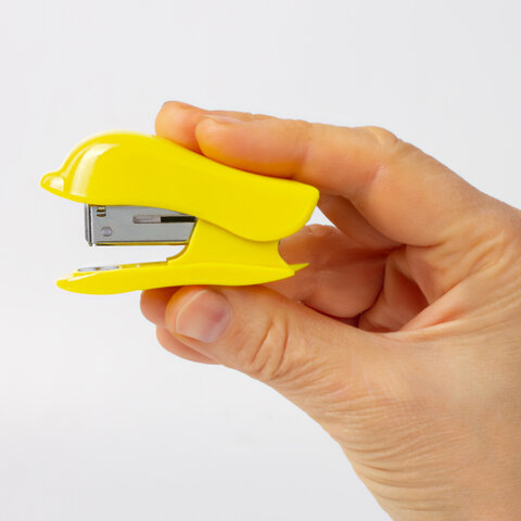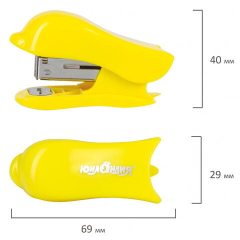 Настольный степлер ЮНЛАНДИЯ "Дельфин" с металлическим механизмом незаменим в работе с документами. Полезный аксессуар для школы и дома.<br><br>Для скрепления до 20 листов бумаги. В комплекте со степлером поставляются скобы №24/6 в количестве 1000 штук. Глубина закладки бумаги - 22 мм. Закрытый и прямой виды сшивания. Оснащен антистеплером. За счет компактных размеров не займет на парте или столе много места, а яркий желтый или голубой цвет и напоминающая дельфина форма скрасят время ребенка на уроках или при написании домашней работы.