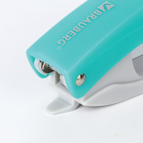 Степлер известного немецкого бренда BRAUBERG способен скрепить до 12 листов, что позволит экономить рабочее время. Стандартный размер скоб №10 подходит для бумаги различной средней плотности. Глубина закладки бумаги - 47 мм. Данная модель может выступать в качестве антистеплера, позволяющего разжать закрепленные скобы более качественно, не нанося повреждений ни материалу, ни кончикам пальцев. За счет миниатюрных размеров не займет на рабочем столе много места, а яркое бирюзово-серое сочетание станет отличным акцентом в интерьере.