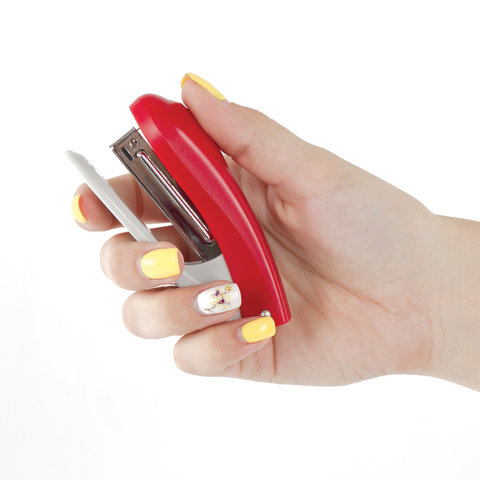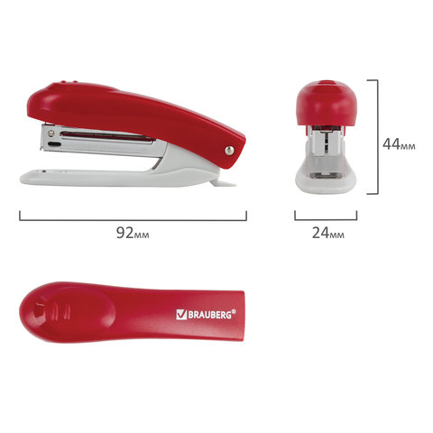 Настольный степлер BRAUBERG "Original" № 10 - один из самых важных помощников для работы с документацией в офисе, образовательных учреждениях и дома.<br><br>Настольный степлер BRAUBERG "Original" с антистеплером в красном пластиковом корпусе с металлическим механизмом cпособен скрепить до 12 листов. Подходящий размер скоб № 10. Виды сшивания: закрытый, прямой. Глубина закладки бумаги - 47 мм. Габариты: высота - 44 мм, ширина - 24 мм, длина - 92 мм. Благодаря компактным размерам удобен в использовании и занимает мало места на рабочем столе, а классический дизайн делает степлер подходящим к любому интерьеру. Продается в картонной упаковке.<br><br>Подходящие скобы: № 10<br>Максимальное количество скрепляемых листов: 12<br>Наличие антистеплера: да<br>Вместимость скоб: 50 шт.<br>Серия: Original<br>Глубина закладки бумаги: 47 мм<br>Виды сшивания степлером: закрытый, прямой<br>Цвет корпуса: красный<br>Материал корпуса: пластик<br>Высота корпуса: 44 мм<br>Длина корпуса: 92 мм<br>Ширина корпуса: 24 мм<br>Упаковка: картонная коробка