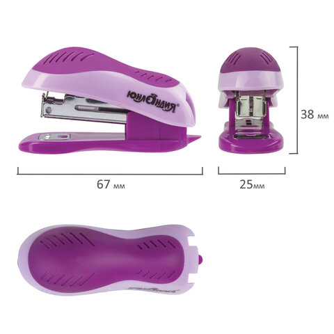 ----Степлер №10 МИНИ ЮНЛАНДИЯ, до 15 листов, с антистеплером, эргономичный, фиолетовый, 228492