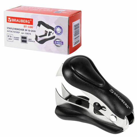 ----Антистеплер для скоб № 10 и № 24/6, BRAUBERG "ST-100", с фиксатором, черный, 228578