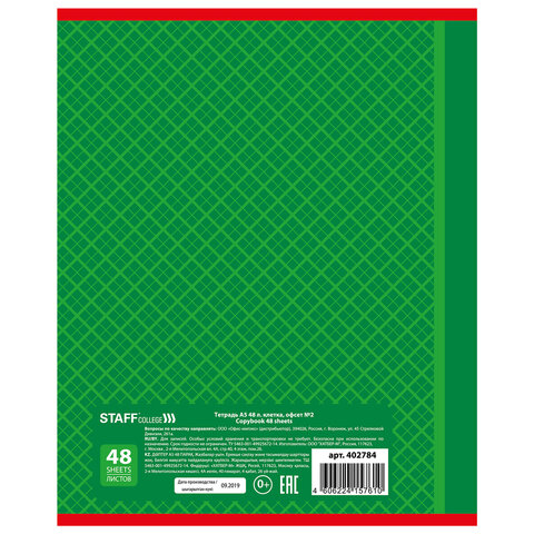 ----Тетрадь А5, 48 л., STAFF, скоба, клетка, офсет №2 ЭКОНОМ, обложка картон, "АБСОЛЮТ", 402784