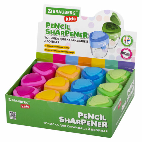 ----Точилка BRAUBERG KIDS "MAXI", 2 отверстия, с большим контейнером, трехгранный корпус, цвета ассорти, 271945