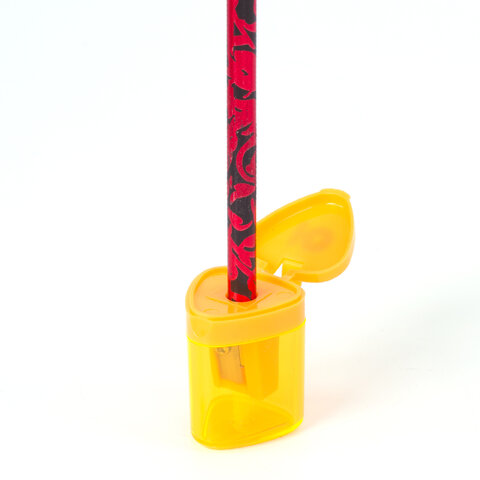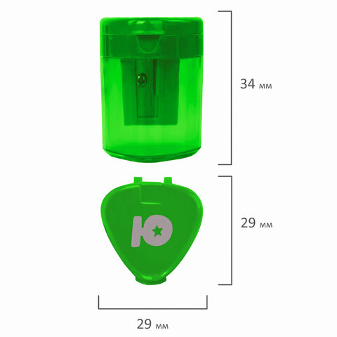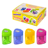 Поставляется в нескольких вариантах дизайна (без возможности выбора).<br><br>Количество в комплекте: 1 шт.<br>Материал корпуса: пластик<br>Форма корпуса: фигурная<br>Количество отверстий: 1<br>Контейнер для стружки: да<br>Серия: Трио<br>Подходит для левшей: да<br>Шторка для закрытия отверстий: да<br>Цвет: ассорти<br>Высота: 34 мм<br>Ширина: 29 мм<br>Глубина: 29 мм<br>Упаковка : картонная коробка -
