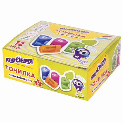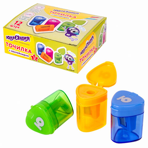 ----Точилка ЮНЛАНДИЯ "Трио", с контейнером, пластиковая, корпус ассорти, 228438