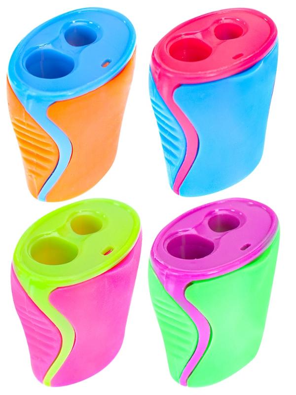 ----Точилка для карандашей 2 отв (ТК-3536) с контейнером пластик, трапеция,ассорти,крат 60