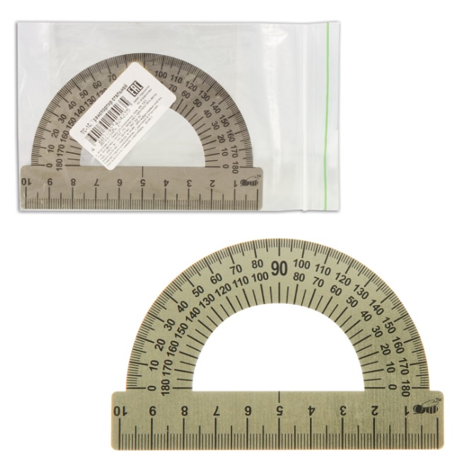 ----Транспортир 10 см, 180 градусов, металлический, ПЧЕЛКА, ТС-10