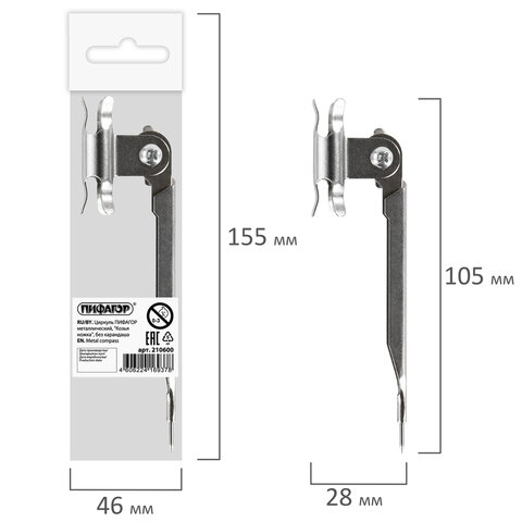 ----Циркуль ПИФАГОР металлический, "Козья ножка", без карандаша, 210600