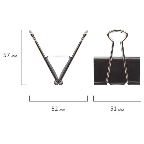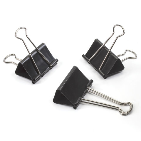 ----Зажимы для бумаг большие STAFF "EVERYDAY", КОМПЛЕКТ 12 шт., 51 мм, на 230 листов, черные, картонная коробка, 224610