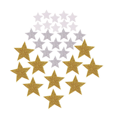 Эти замечательные наклейки крайне просты в использовании - необходимо отделить их от основы и разместить там, где требует этого фантазия. Никакого клея не требуется!<br><br>Тип товара: наклейки из EVA<br>Формат: звезды малые<br>Количество декоративных элементов: 30 шт.<br>Длина: 2.5 см<br>Ширина: 2.5 см<br>Цвет: ассорти<br>Материал: ЭВА<br>Возрастная группа: старше 3 лет<br>Упаковка: пакет с европодвесом -