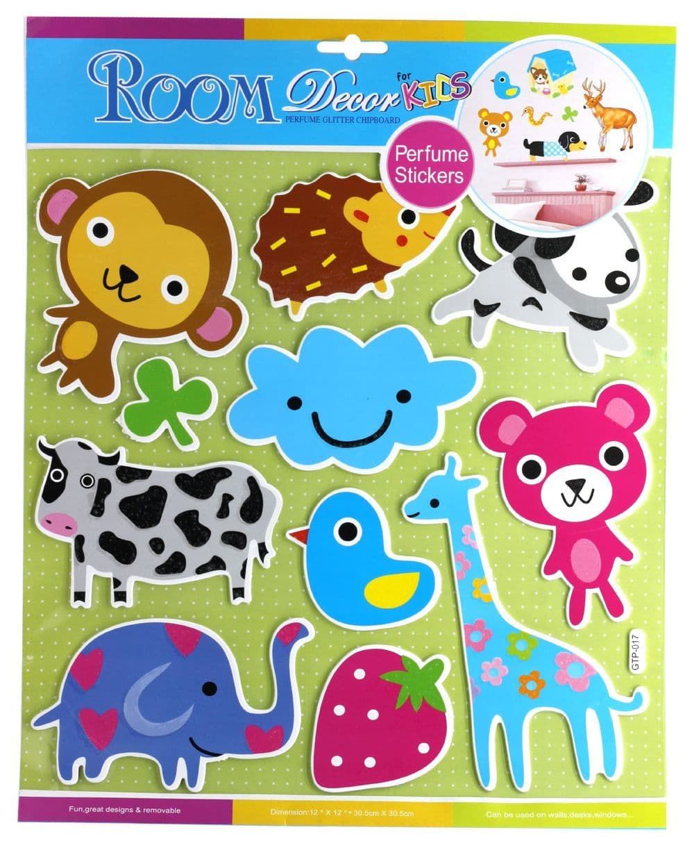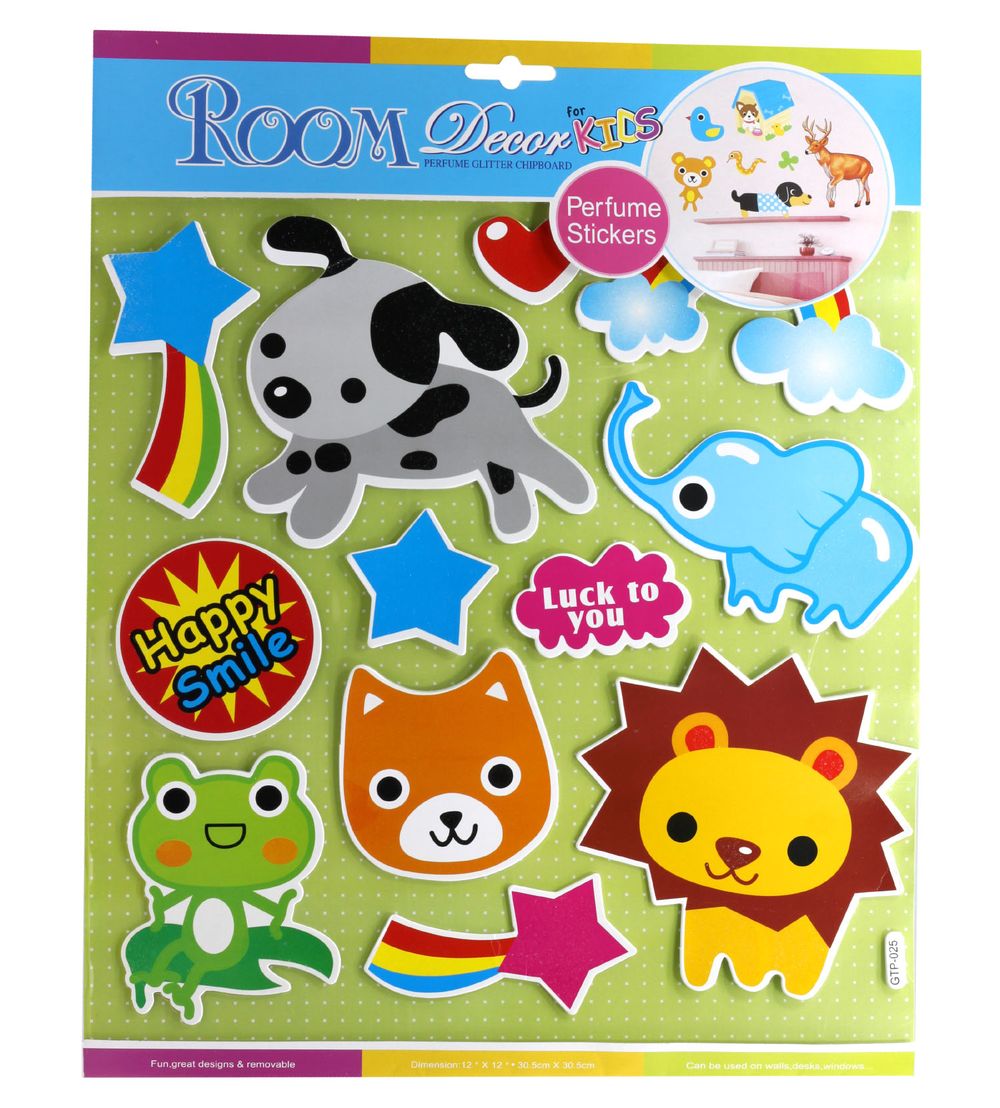 наклеек использованы как рисованные картинки животных и предметов,
