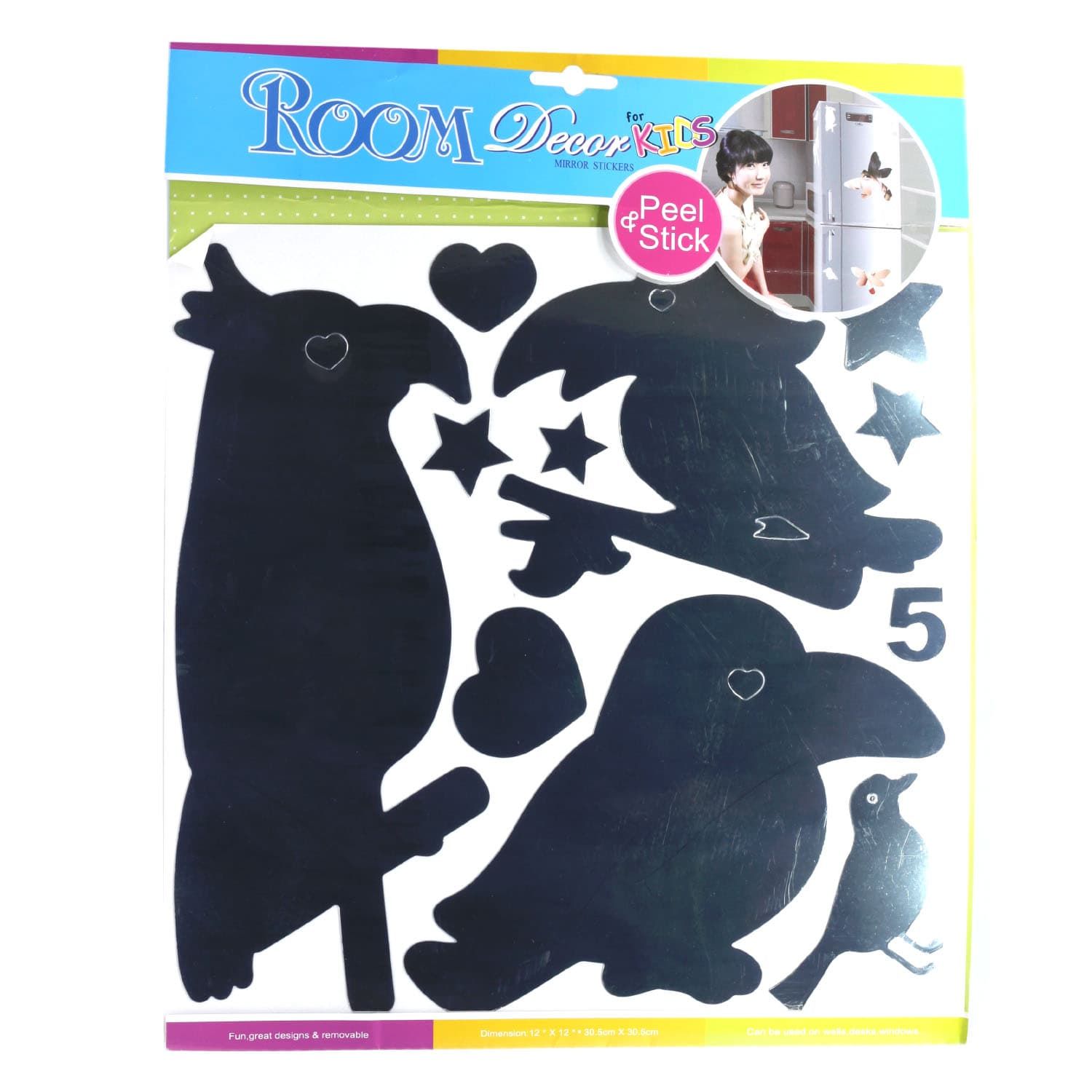 Очень необычные зеркальные наклейки для декорирования помещения в виде птиц. Они прекрасно подойдут для украшения любой комнаты, независимо от пола ребенка. Использовать наклейки можно и в других комнатах, где они станут одним из оригинальных элементов декора. Все наклейки долгое время держатся на поверхности.