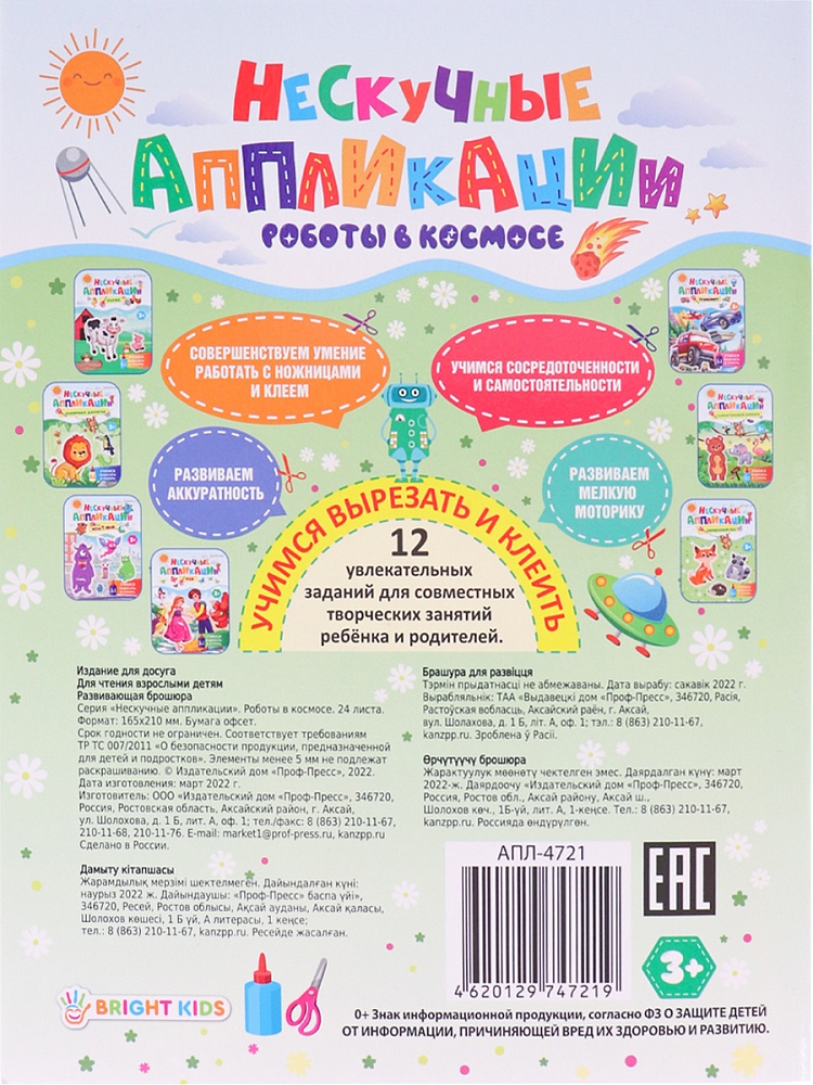 Учимся вырезать и клеить А5 РОБОТЫ В КОСМОСЕ (АПЛ-4721) 24л, бл офс, обл цел.карт, скрепка