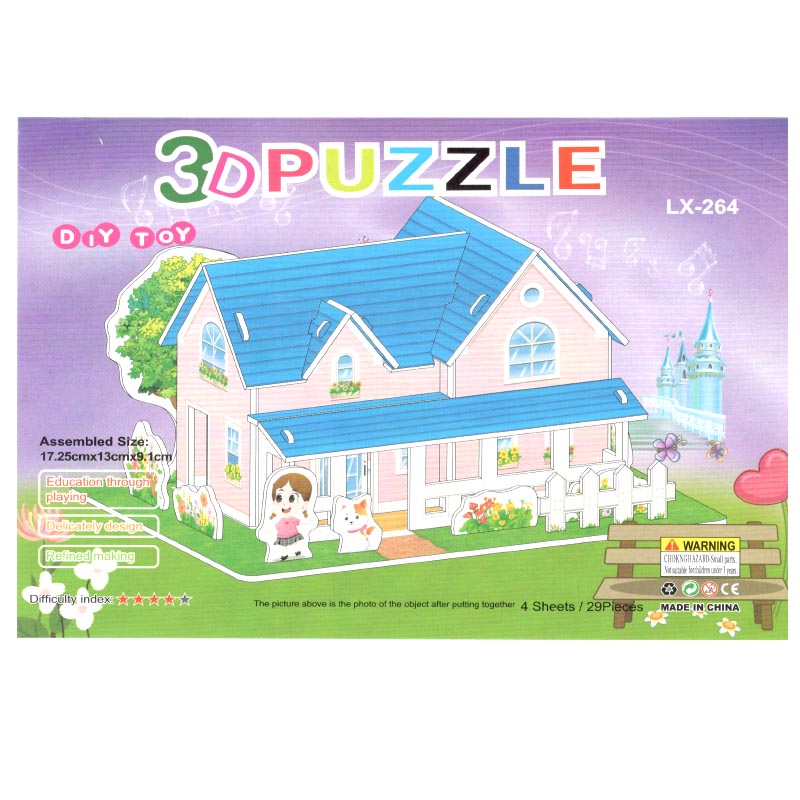 ----Пазл 3D А5 LX-264 Дом розовый с синей крышей 21,5х1х14,5см (17х13х9)см