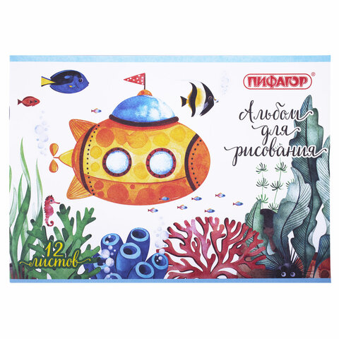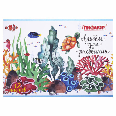 ----Альбом для рисования А4 12 л., скоба, обложка офсет, ПИФАГОР, 203х288 мм, "Океан" (2 вида), 106687