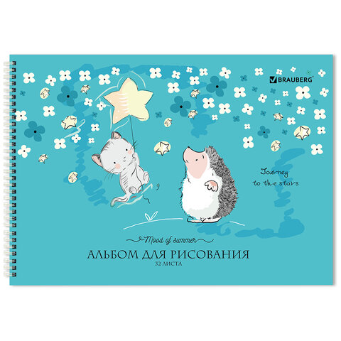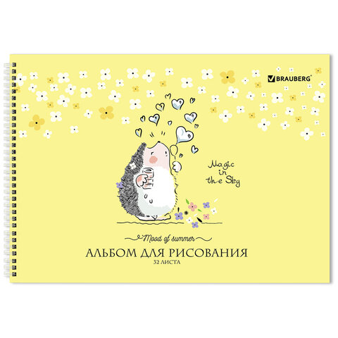 Альбом для рисования, А4 32 листов, гребень, обложка картон, BRAUBERG, 195х285 мм, "Ёжики" (2 вида), 106698